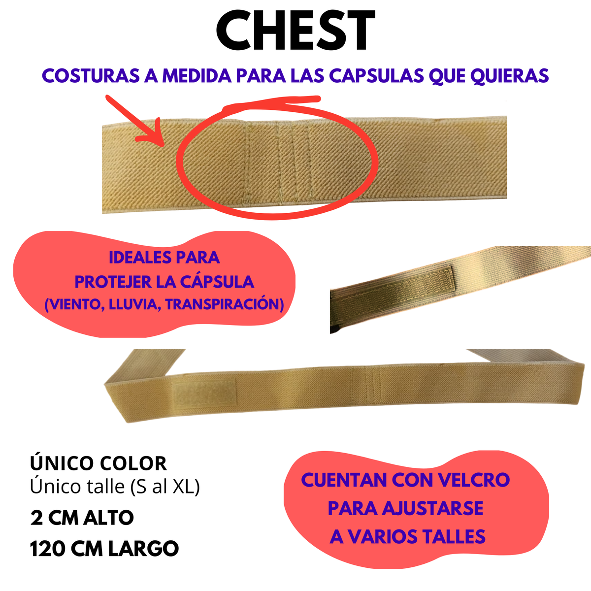 El chest tiene varios velcros para poder adecuarse a varios talles.